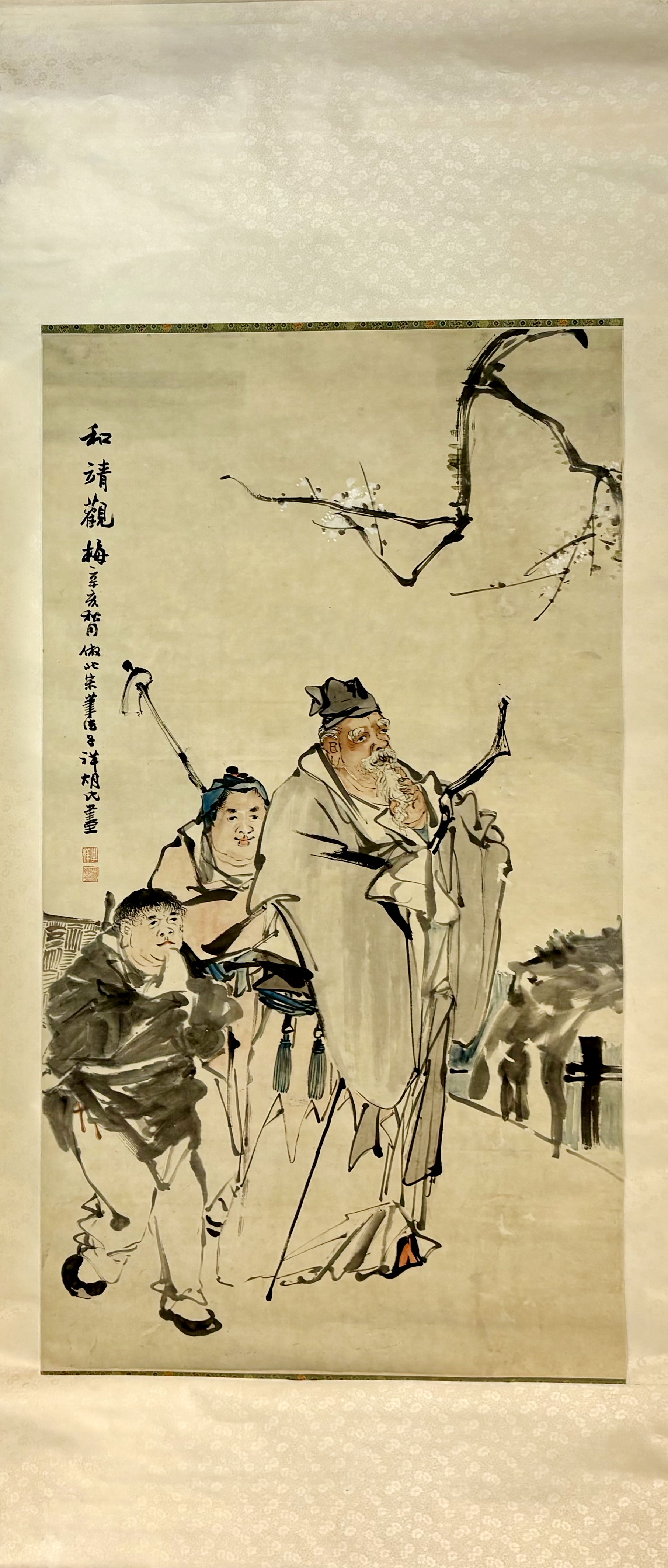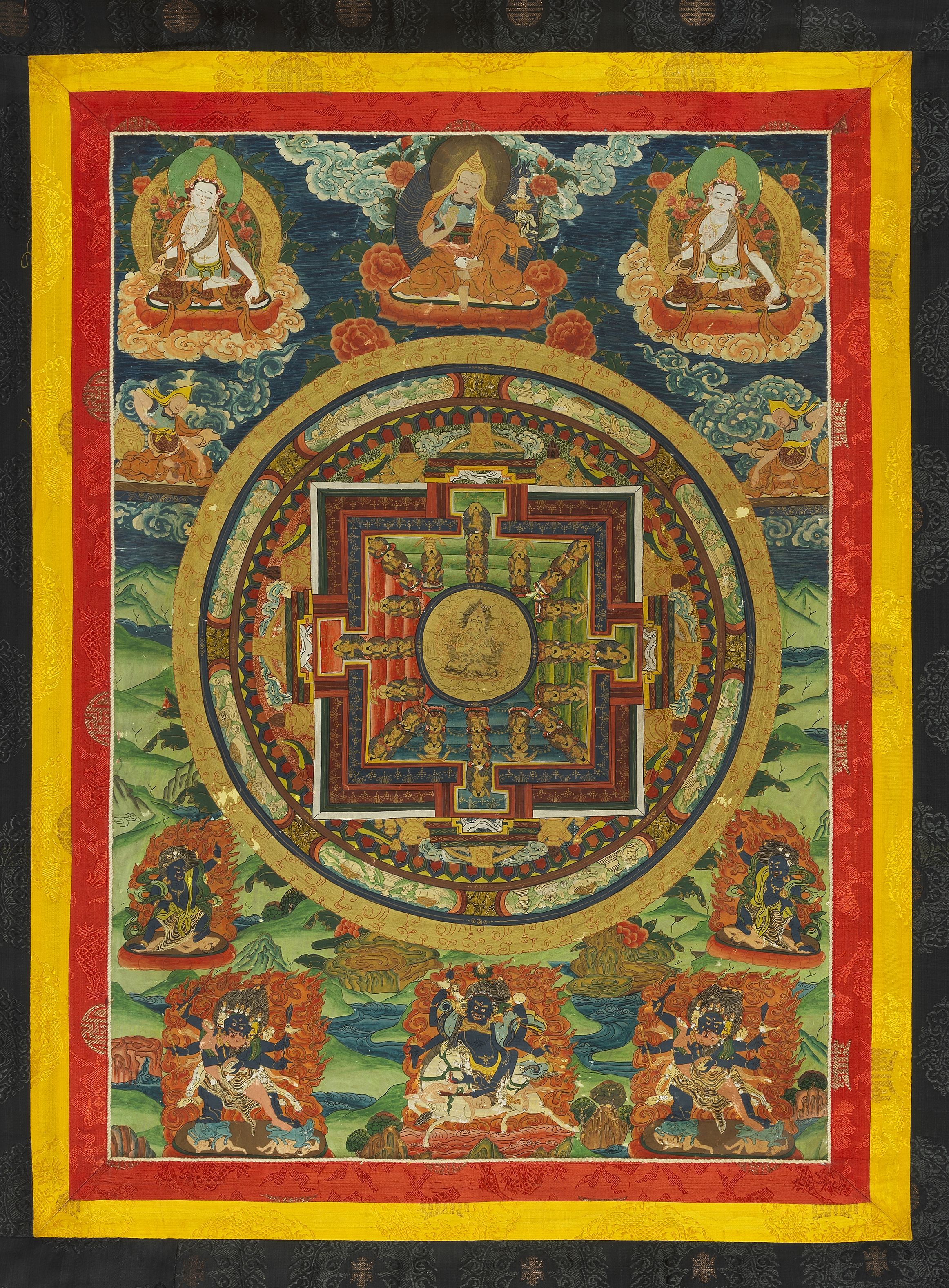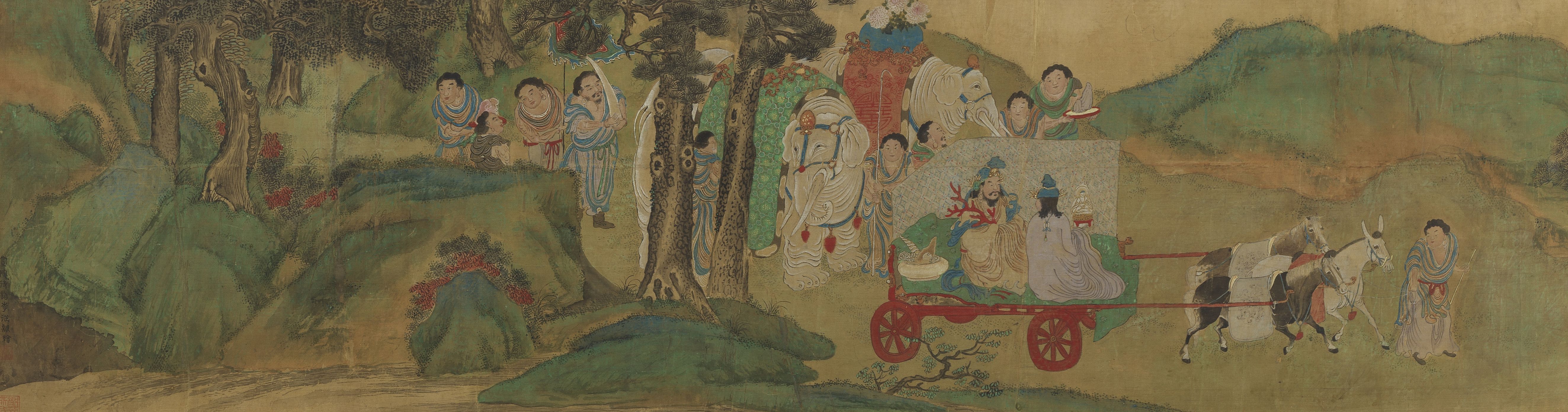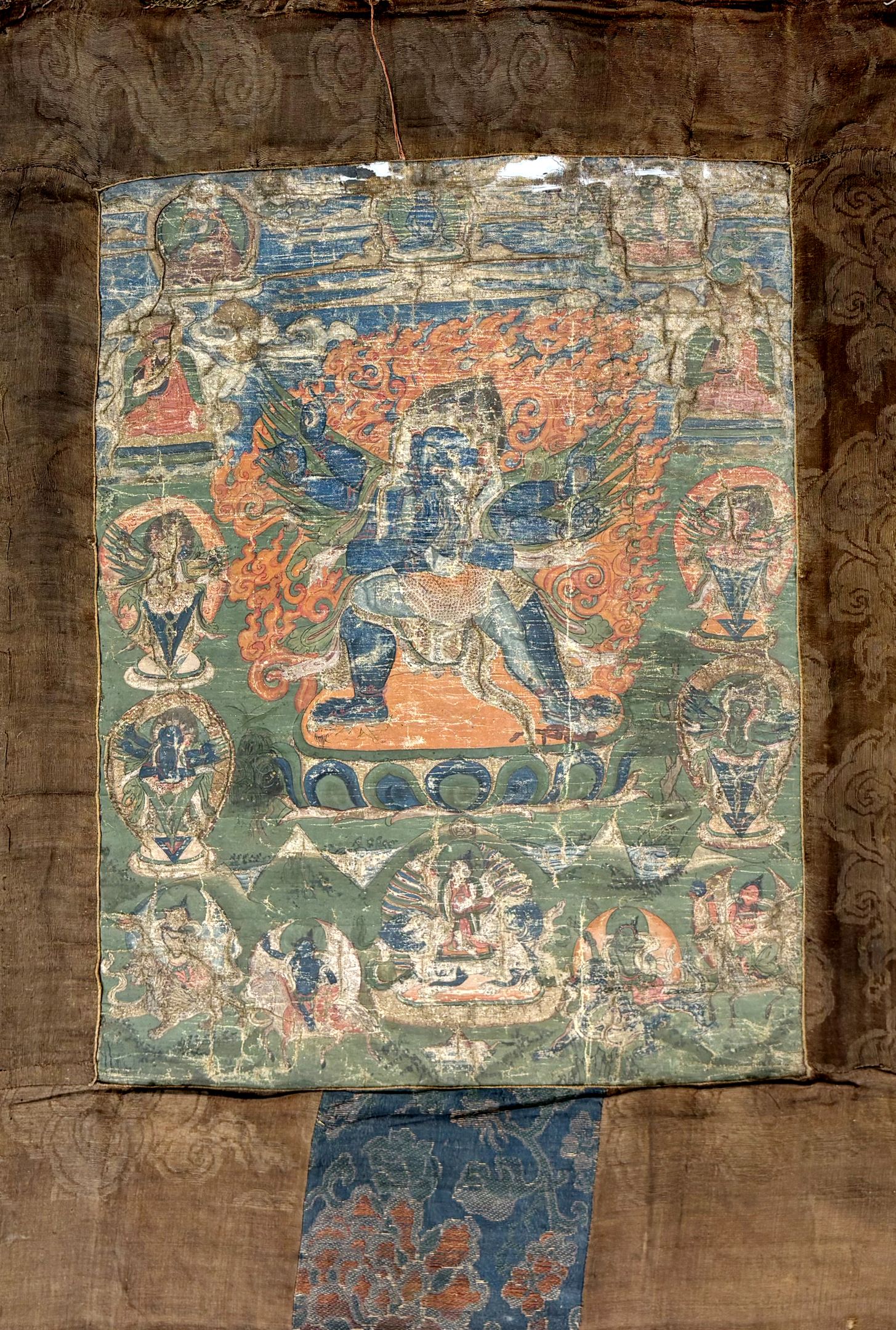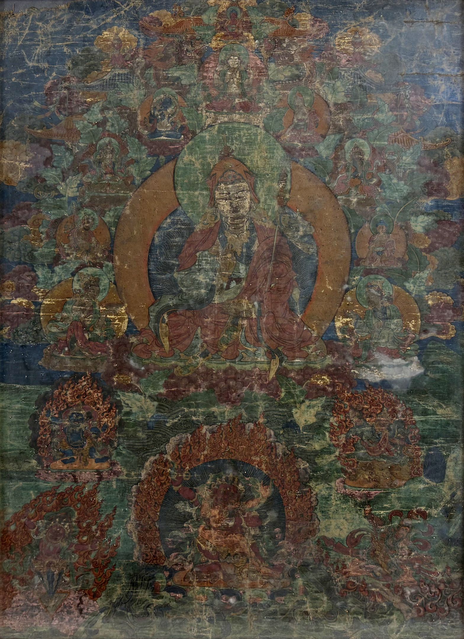Figurant une divinité et ses acolytes, pigments sur soie, 52x40...