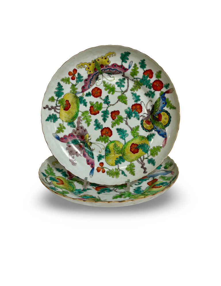 5002. Paire d'assiettes famille verte, Chine, fin dynastie Qing (1644-...