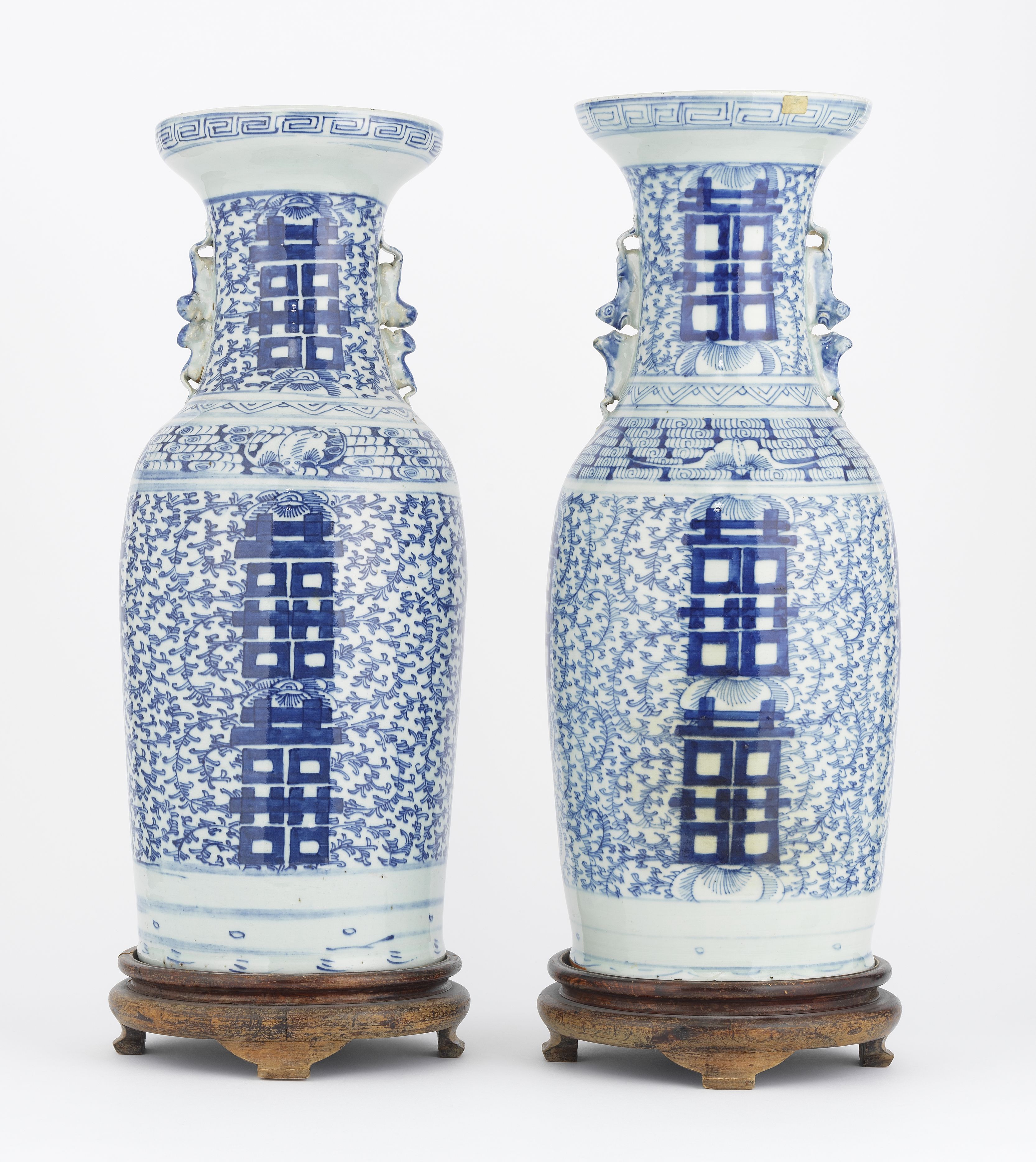 Porcelaine bleu blanc à décor du caractère du double bonheur, H...