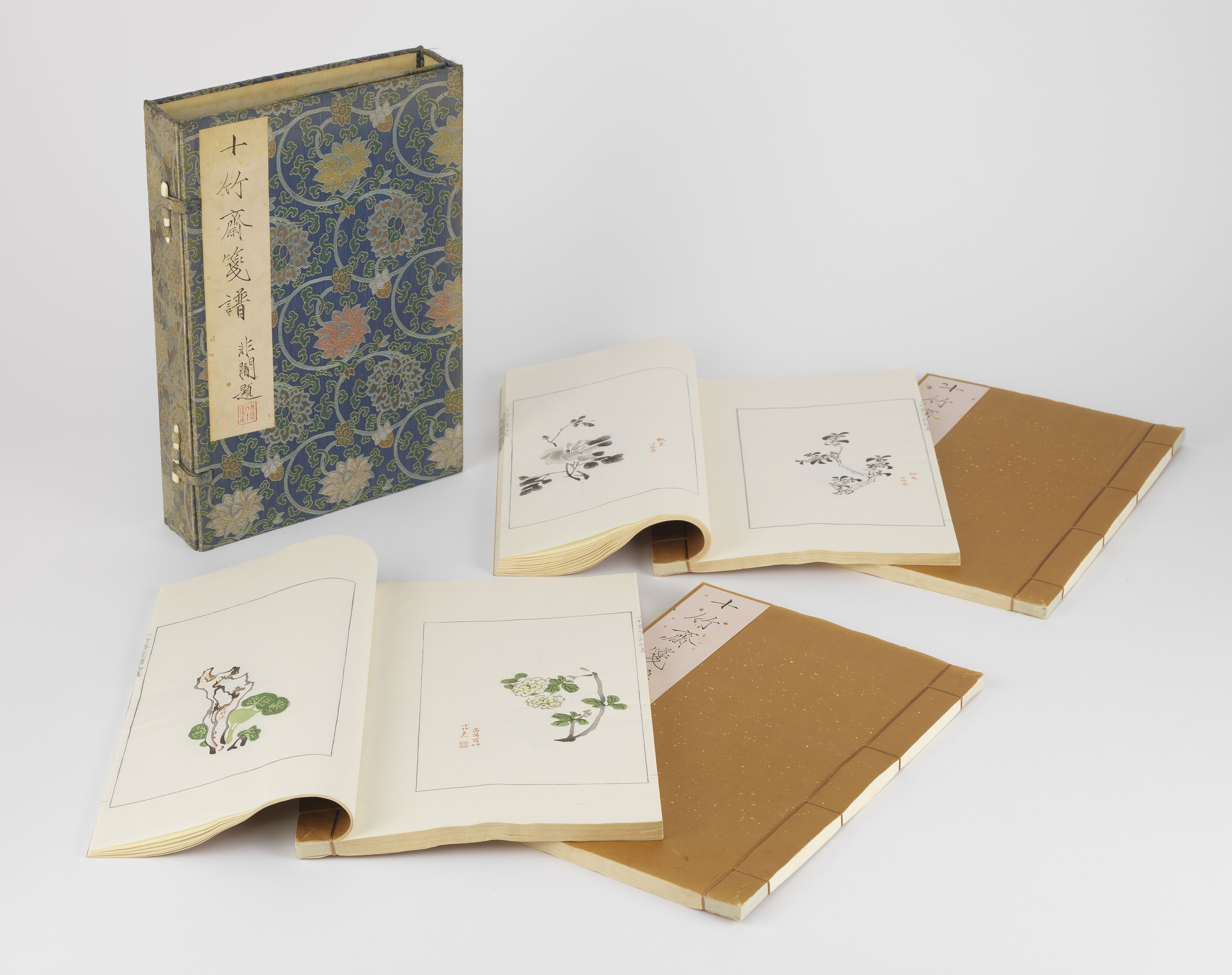 Quatre volumes reliés, xylogravure en couleurs et gaufrage,31,5x...