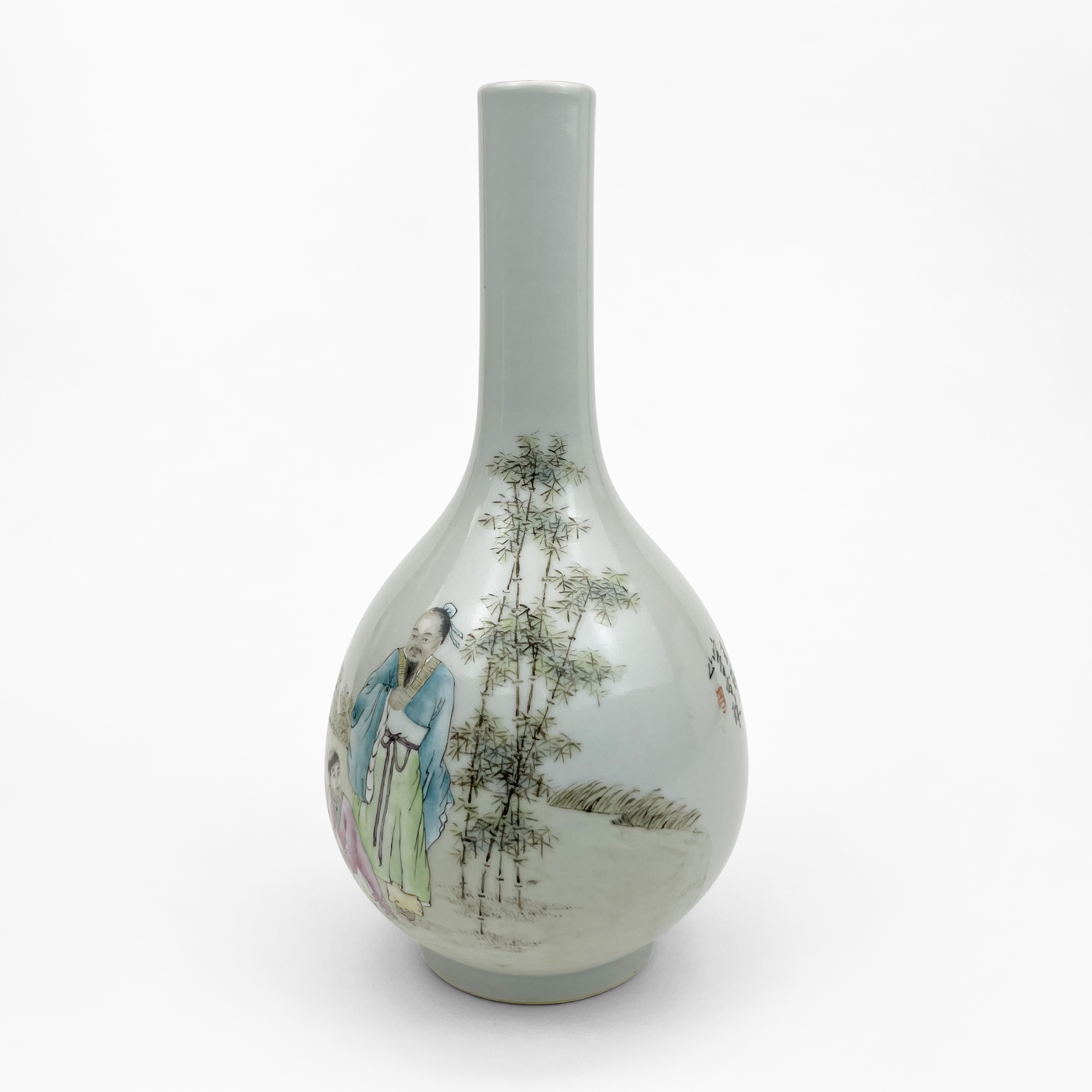 Porcelaine émaillée polychrome à motifs de personnages, H 32 cm....