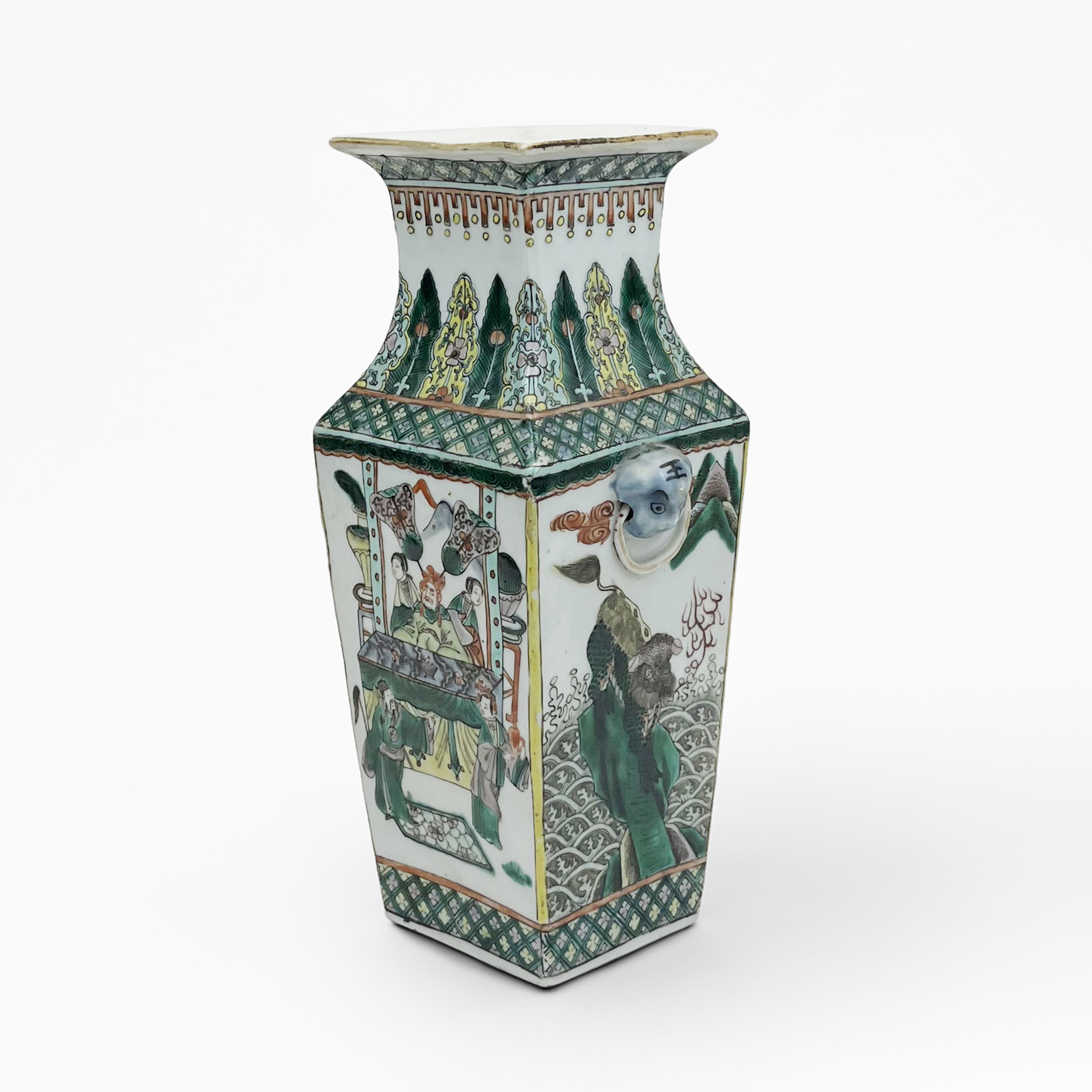 5001. Vase à section carrée à motif de scènes de cour et animaux fanta...