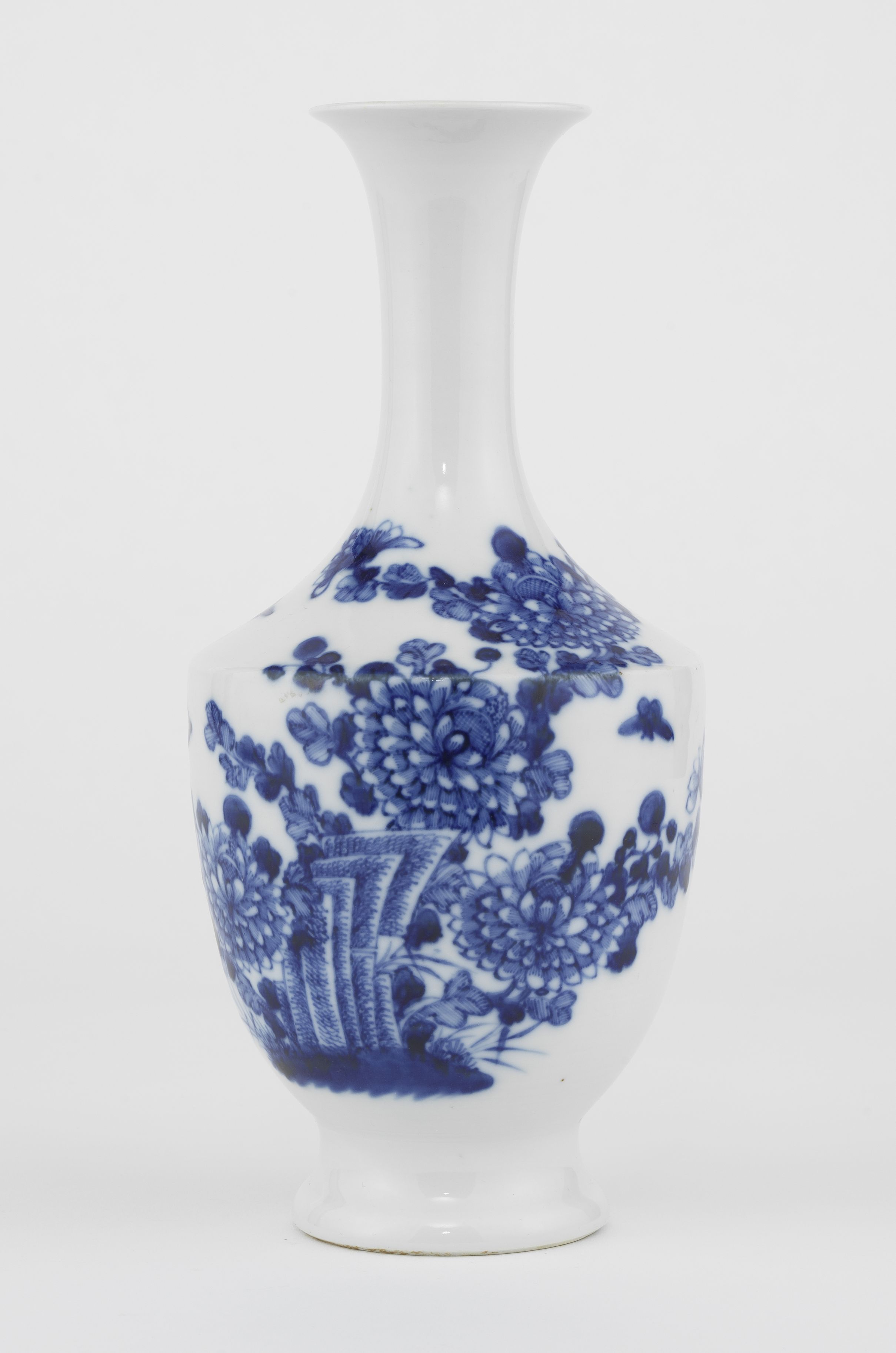 Porcelaine émaillée bleu blanc à motifs floraux, H 24 cm