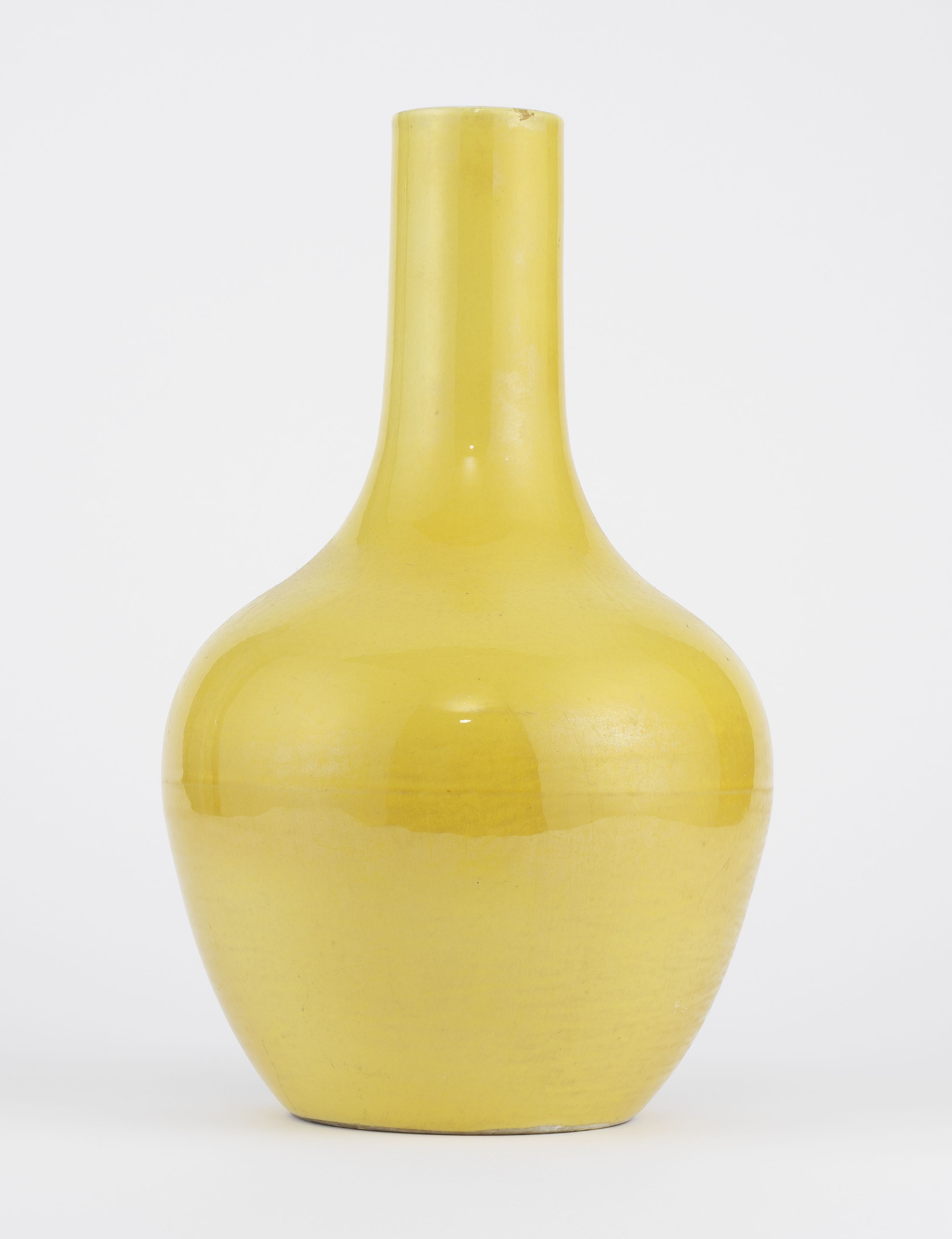 Porcelaine émaillée monochrome jaune, H 39 cm
