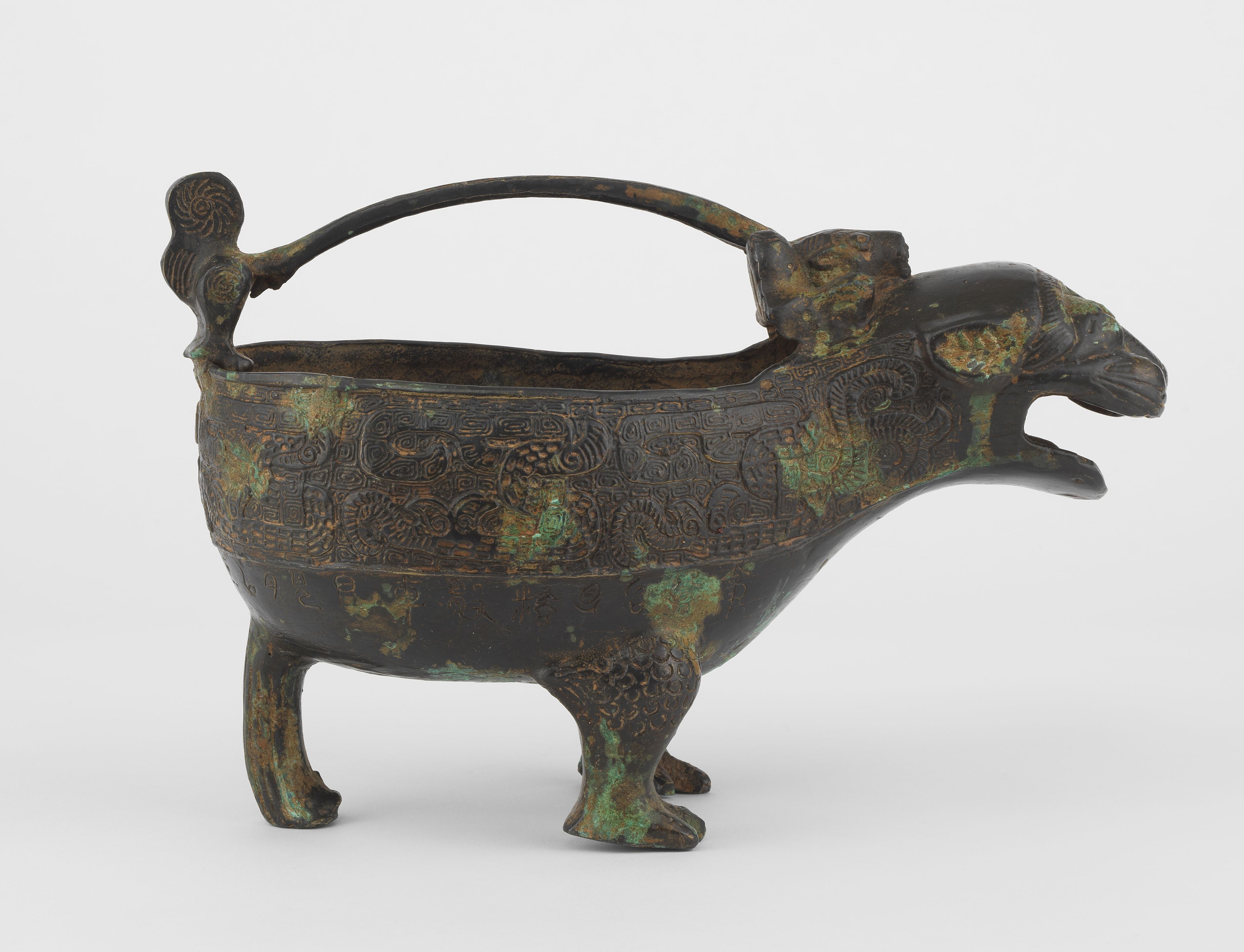 Bronze, à décor de masques taotié et inscription jiagu, 18x28x12...