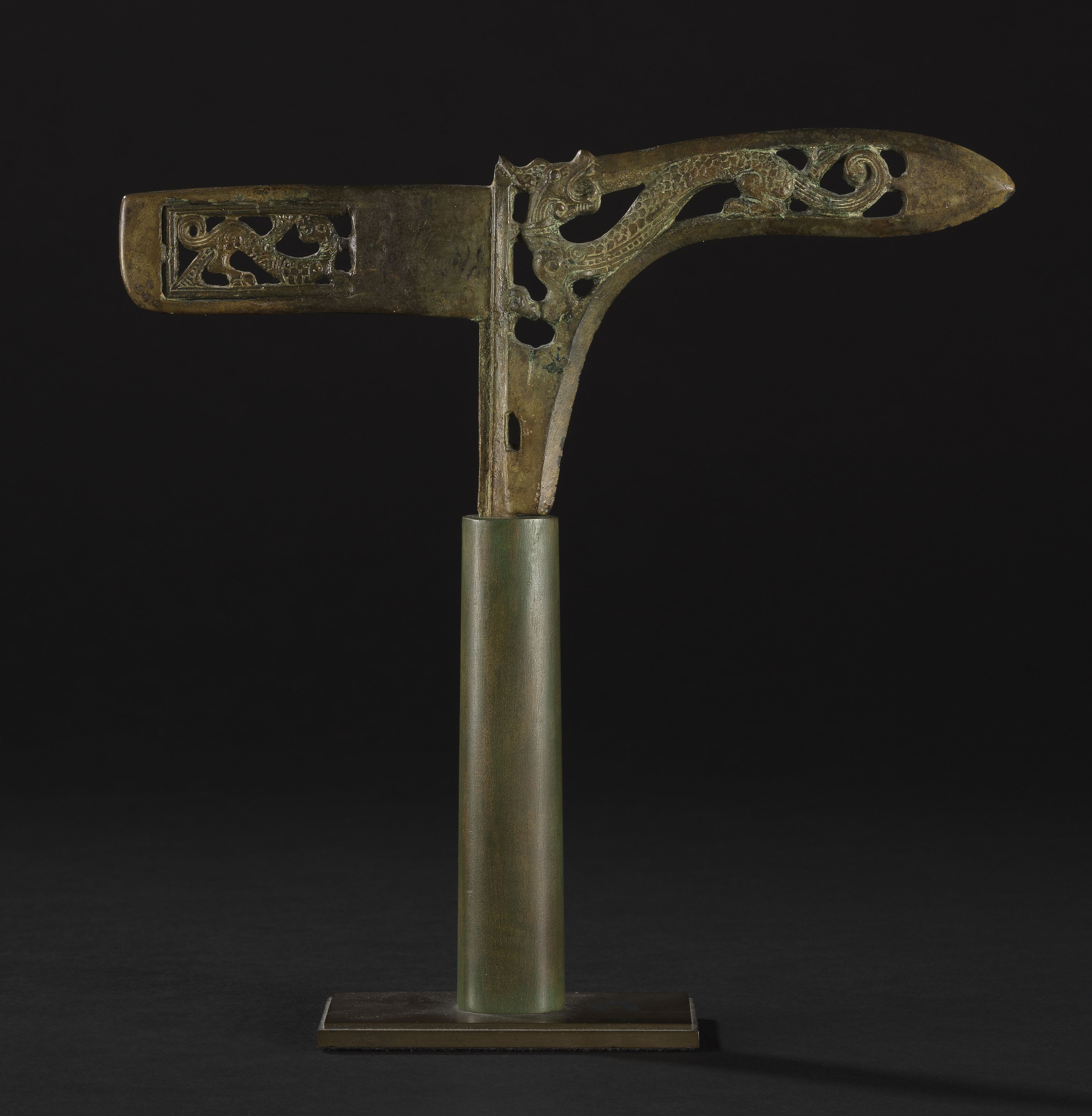 5209. Hache votive ajourée à décor de deux dragons, Chine, dynastie Ha...