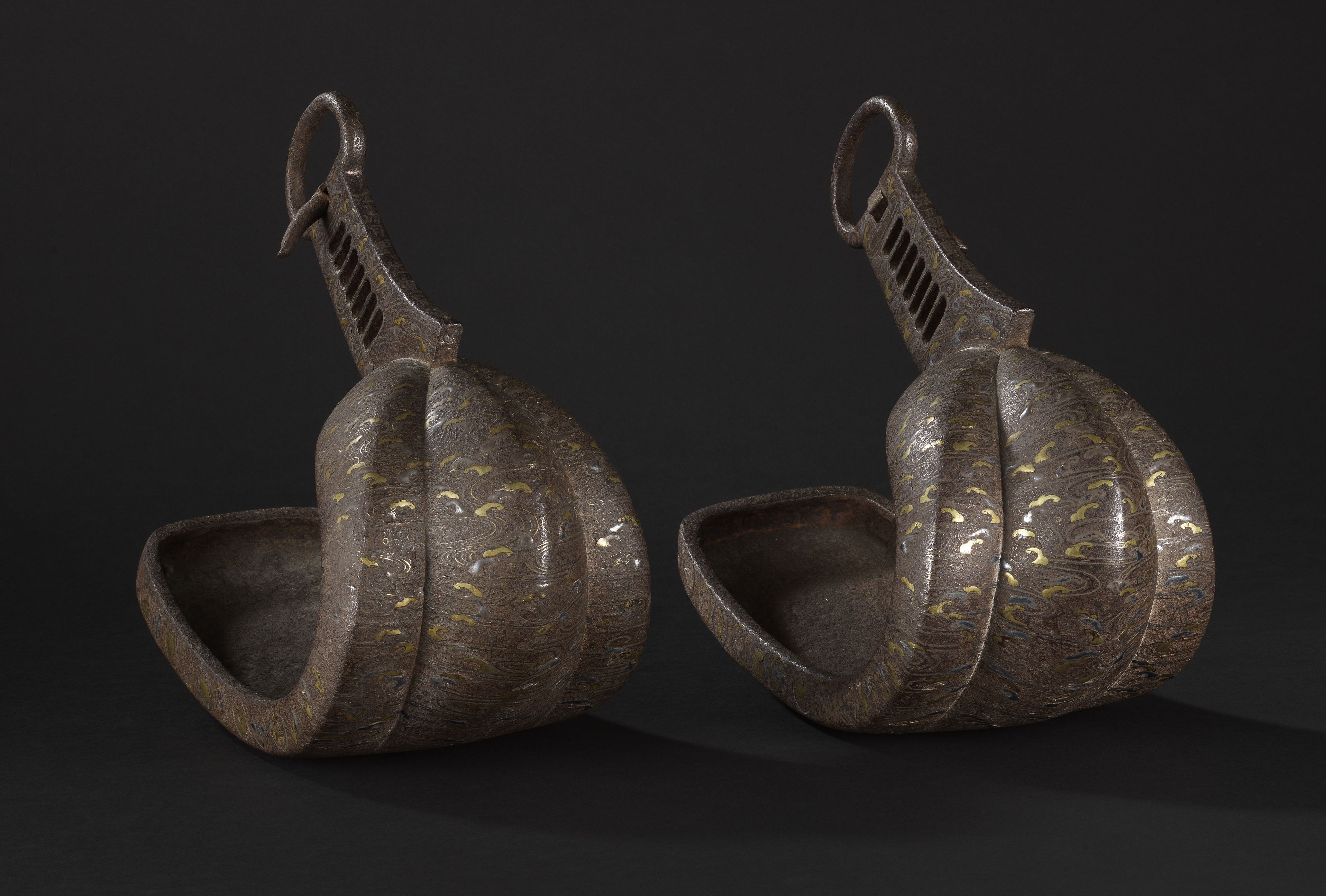 Acier et traces d'incrustation d'argent et or, H 6,5 cm. Collect...
