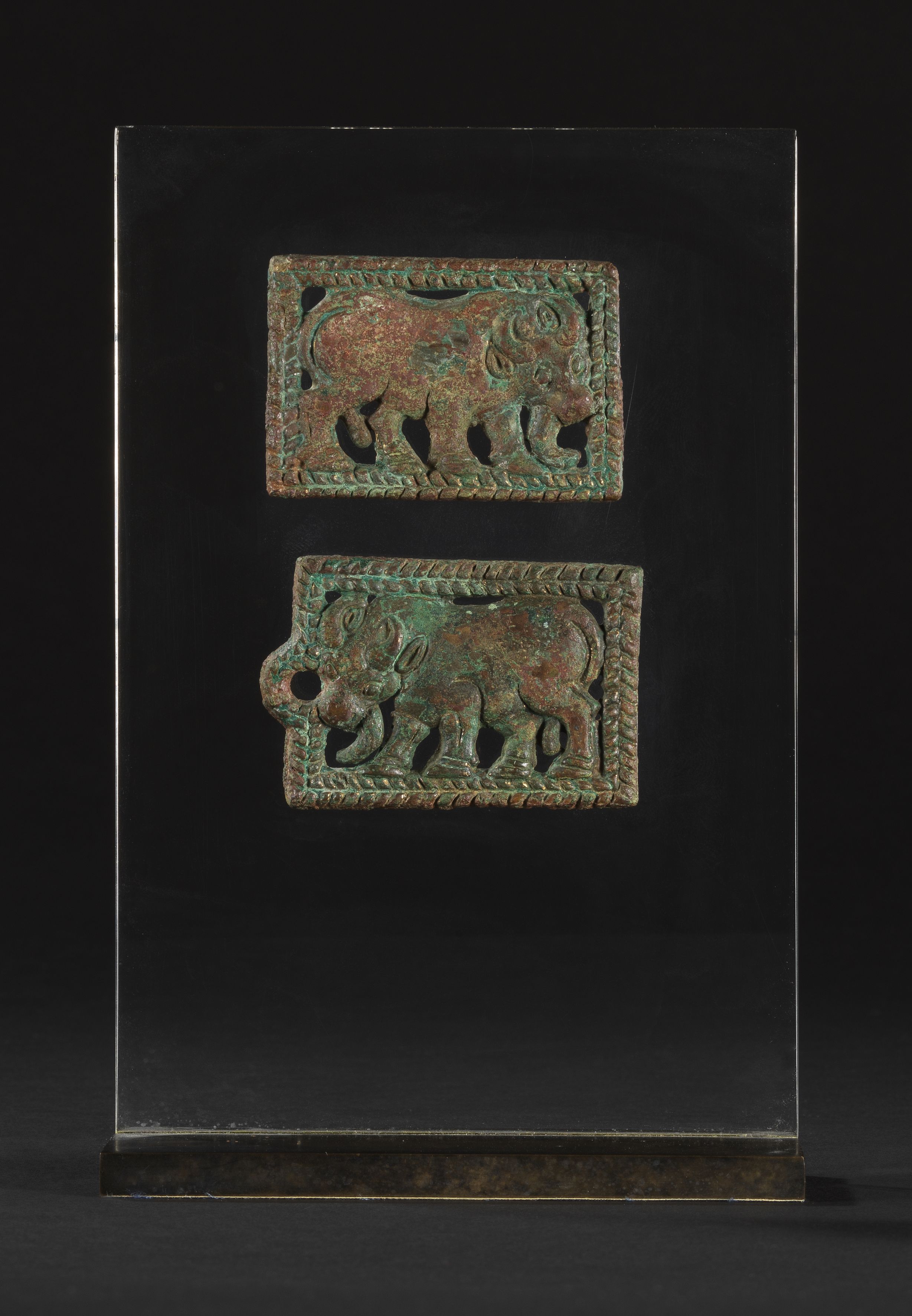 5203. Paire de boucles de ceinture à décor de buffles, Ordos, fin du I...