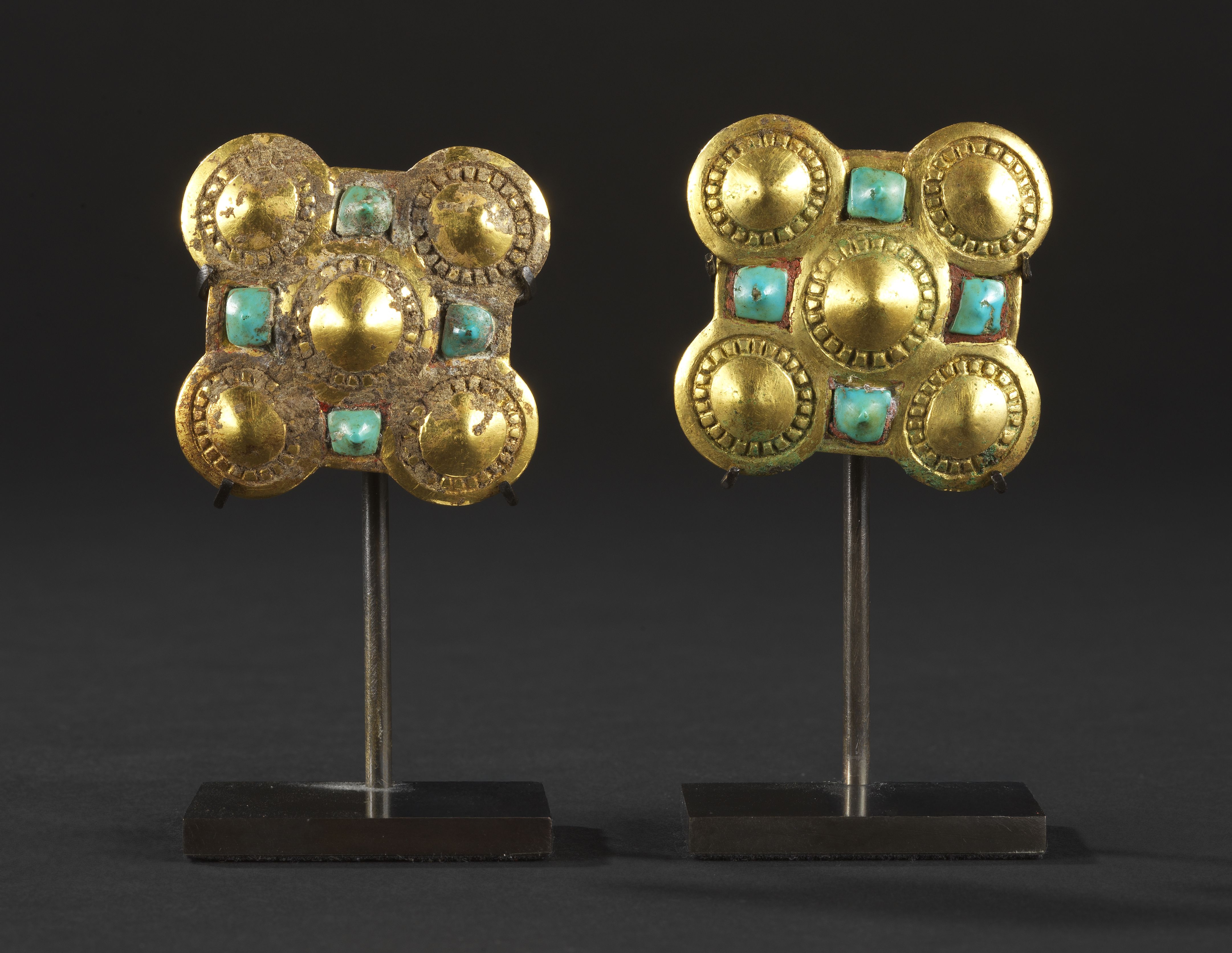 Or et cabochons de turquoise, 6,5x11,5 cm. Collection d’un amate...