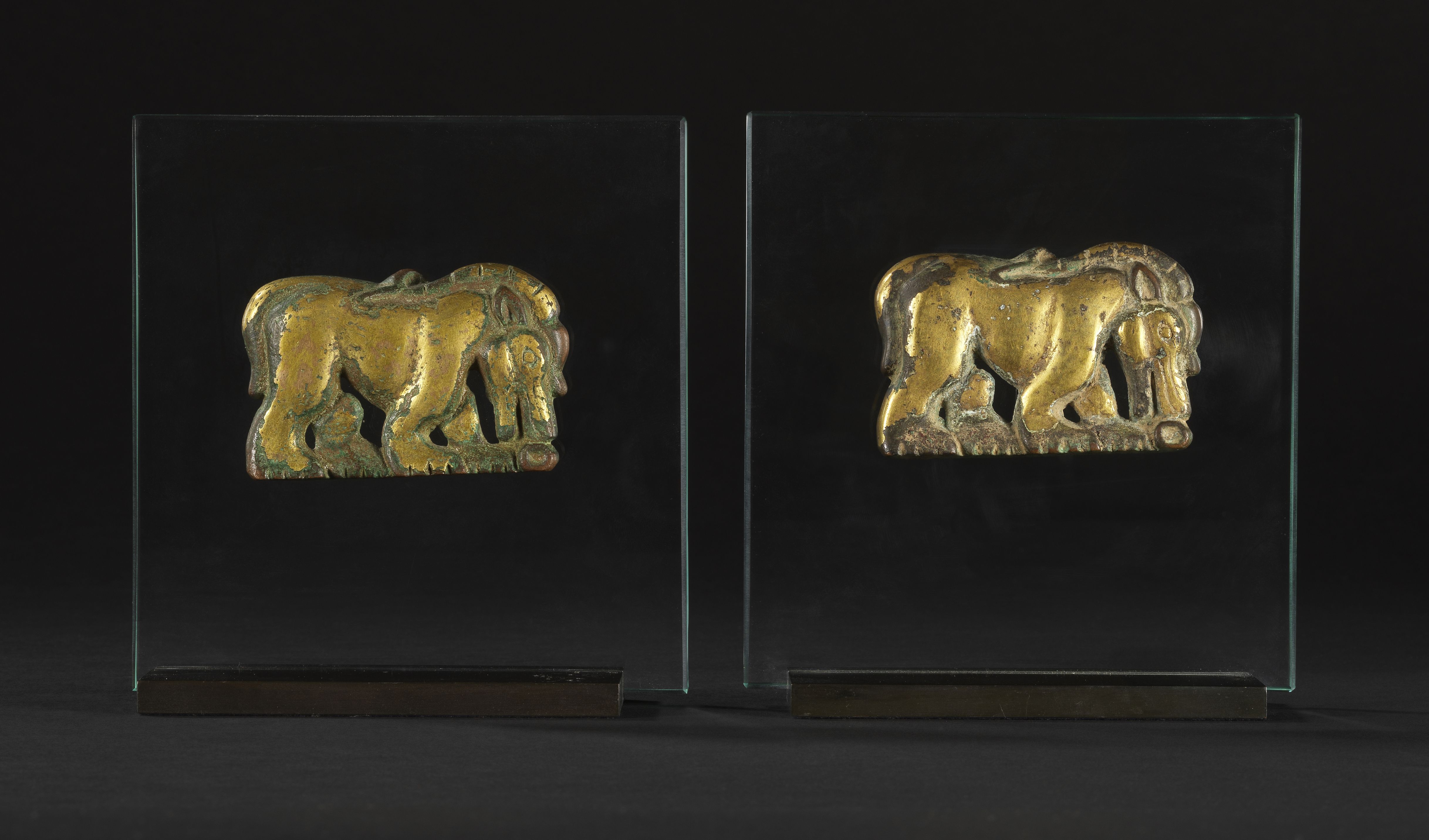 5204. Paire de plaques de ceinture figurant un loup stylisé, Ordos, dy...